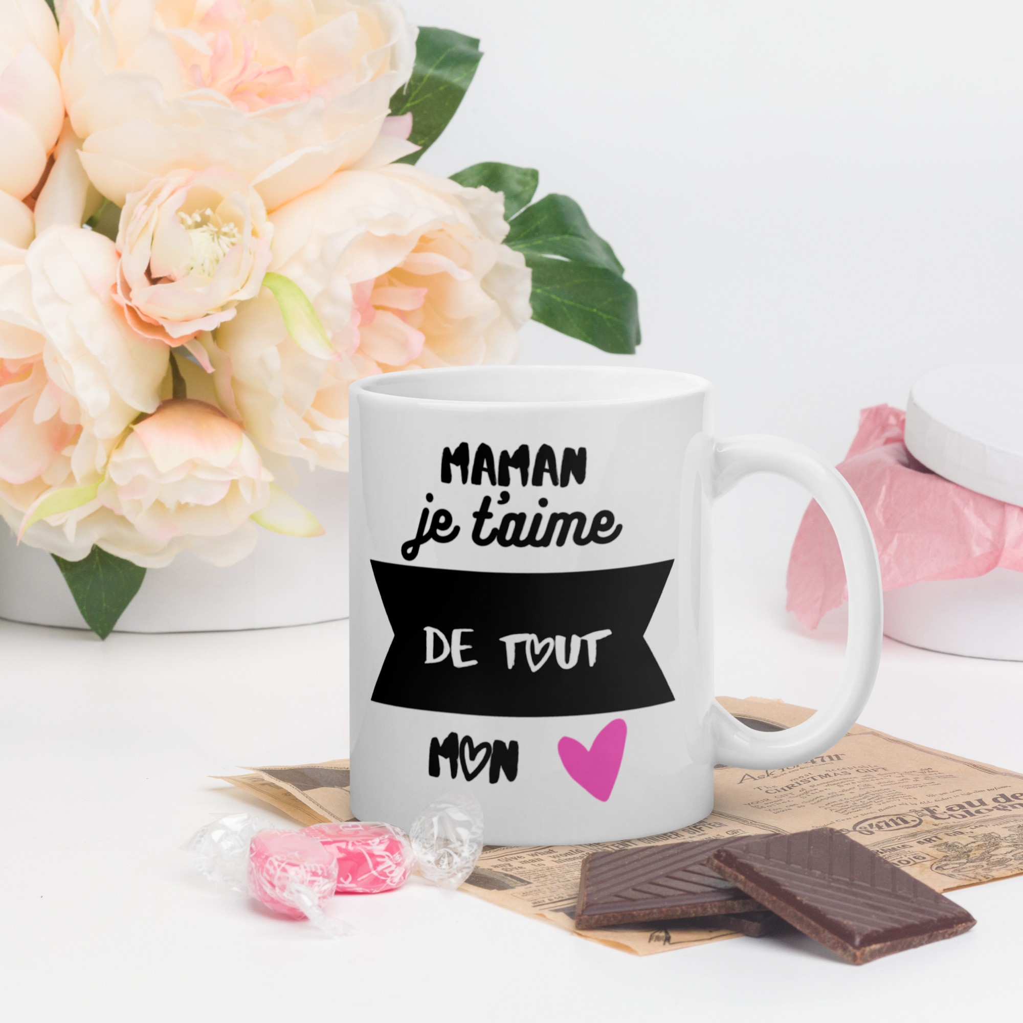 Avec sa typographie élégante et ses touches de rose pétillantes, c'est bien plus qu'une simple tasse, c'est un message d'amour qu'elle gardera précieusement.
