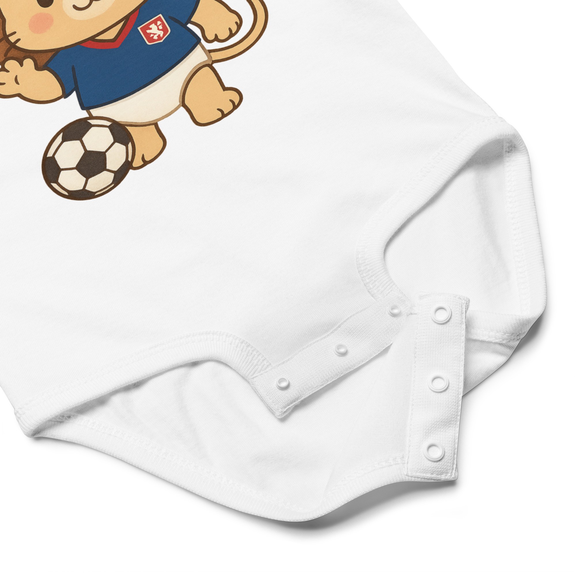 Ce body au design exclusif , un adorable petit lion aux couleurs rouge, bleu et blanc, est imprimé en haute qualité DTG pour un rendu durable et éclatant.