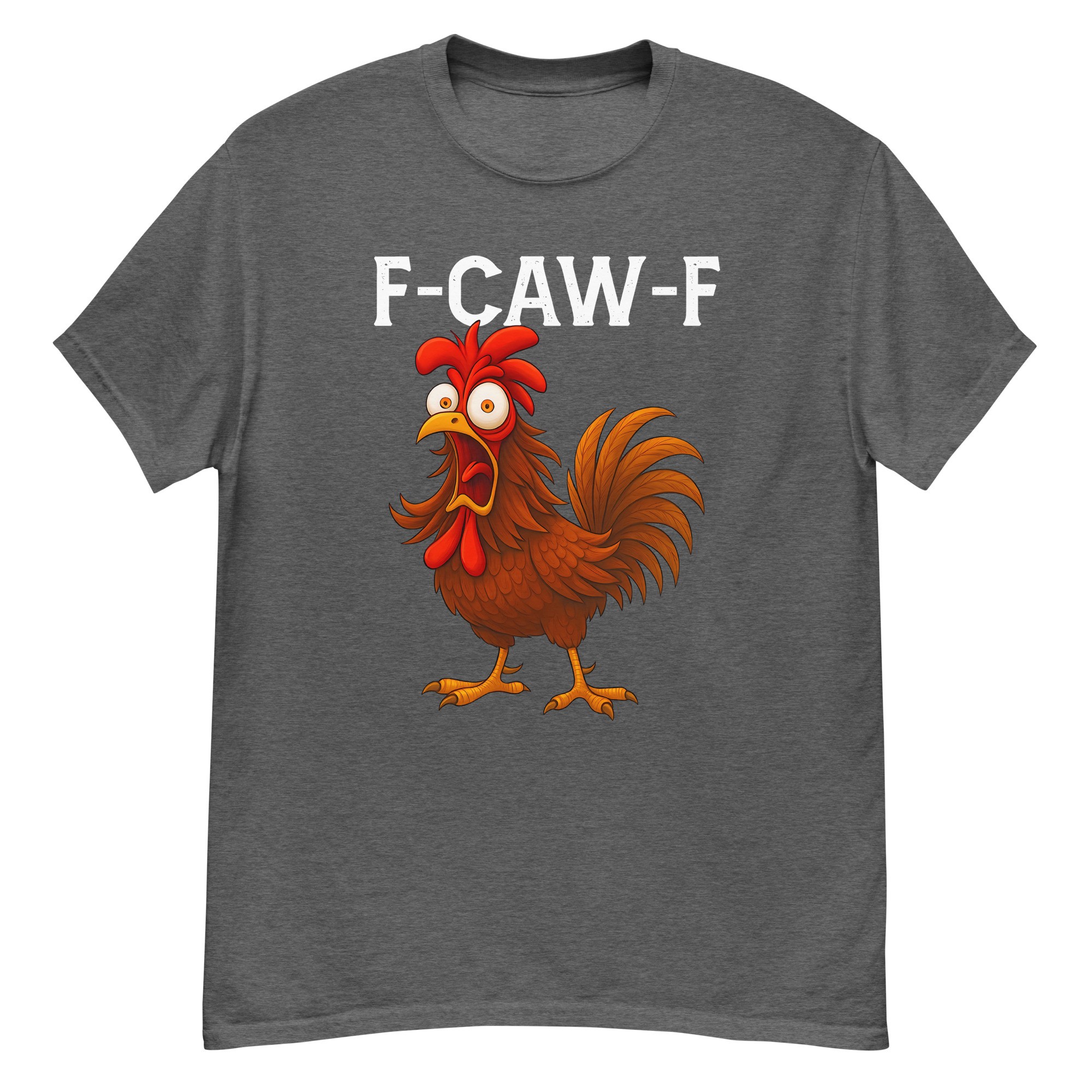 Le visuel met en avant un coq cartoon expressif accompagné du texte “F-CAW-F” – un clin d’œil amusant qui fera sourire tout le monde.