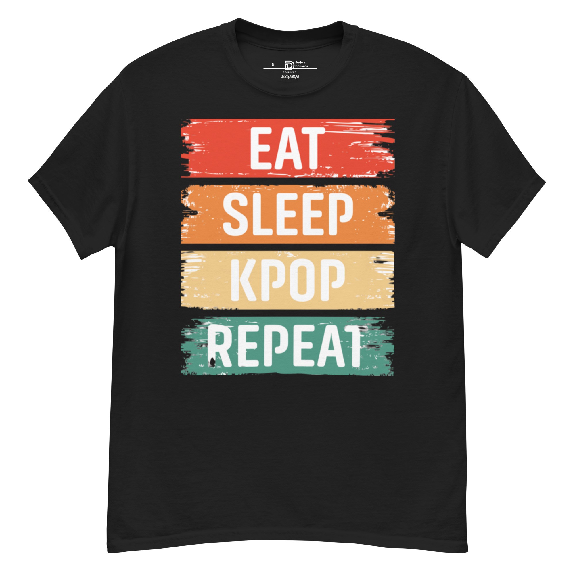Exprime ta passion à chaque instant avec le T-shirt “Eat Sleep Kpop Repeat” ! Conçu pour les vrais fans, ce visuel moderne et punchy reflète parfaitement le lifestyle des amoureux de la K-pop : manger, dormir, vibrer au rythme de tes groupes favoris… et recommencer !