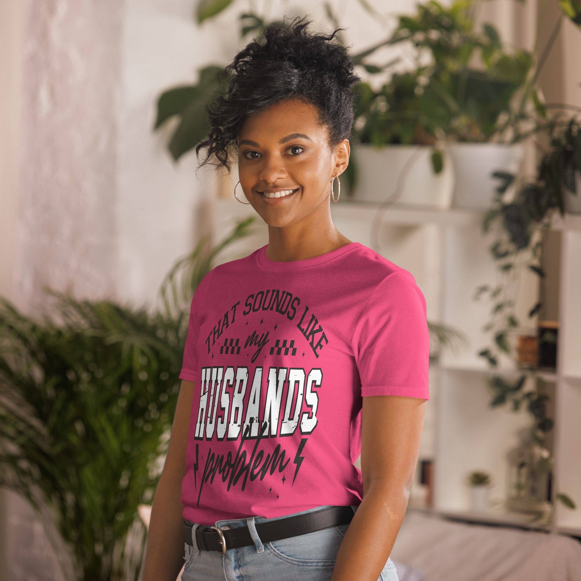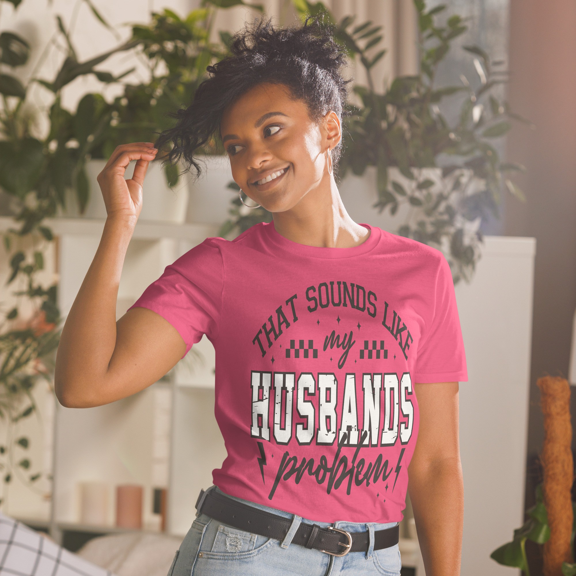 Besoin d’un t-shirt qui fait sourire dès qu’on le lit ? Ce modèle "That Sounds Like My Husband’s Problem" est parfait pour toutes celles qui ont le sens de l’humour… et un mari qui gère "certaines responsabilités" .