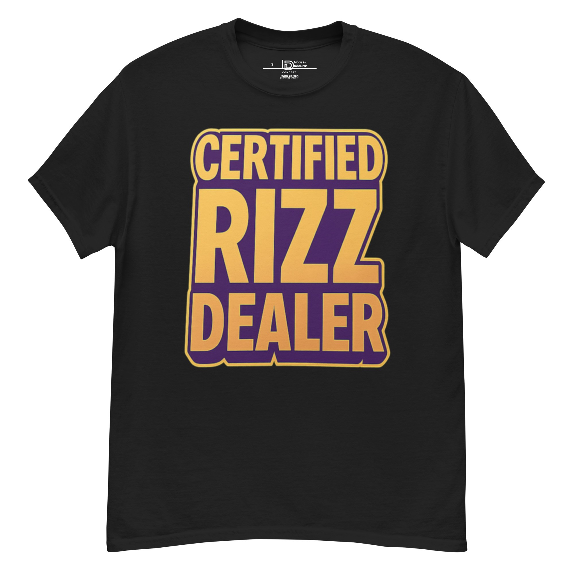 Découvrez le t-shirt Certified Rizz Dealer, un modèle tendance inspiré de la culture internet et des memes populaires.