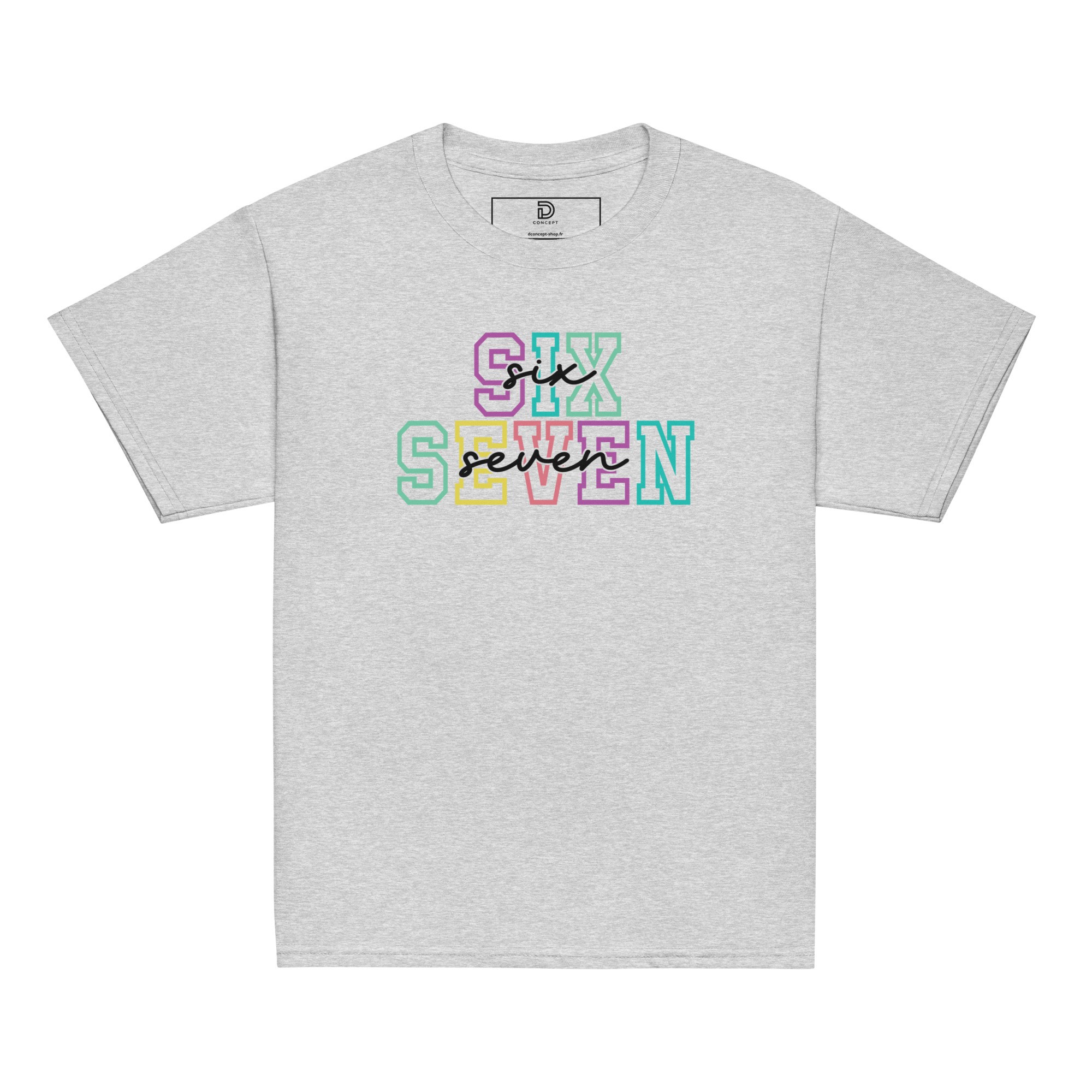 Un tee "Six Seven" aux couleurs pastel façon campus américain, parfait pour les ados qui veulent surfer sur le délire 67 sans un gros visuel cartoon.