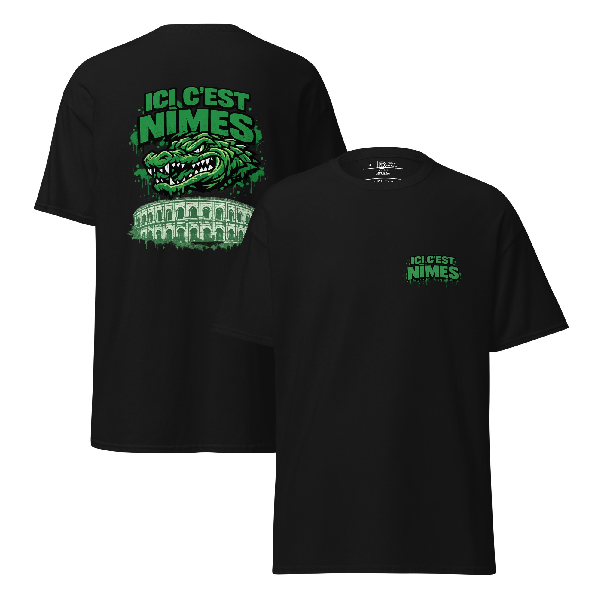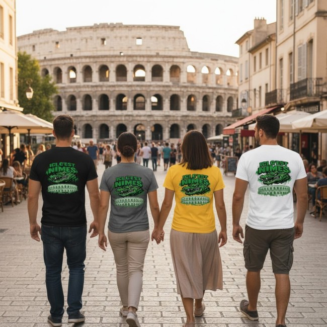 Affirme ton identité avec ce t-shirt « Ici c’est Nîmes », un modèle fort inspiré des symboles emblématiques de la ville : le crocodile et les Arènes de Nîmes. Un design urbain et local, pensé pour celles et ceux qui portent Nîmes avec fierté.