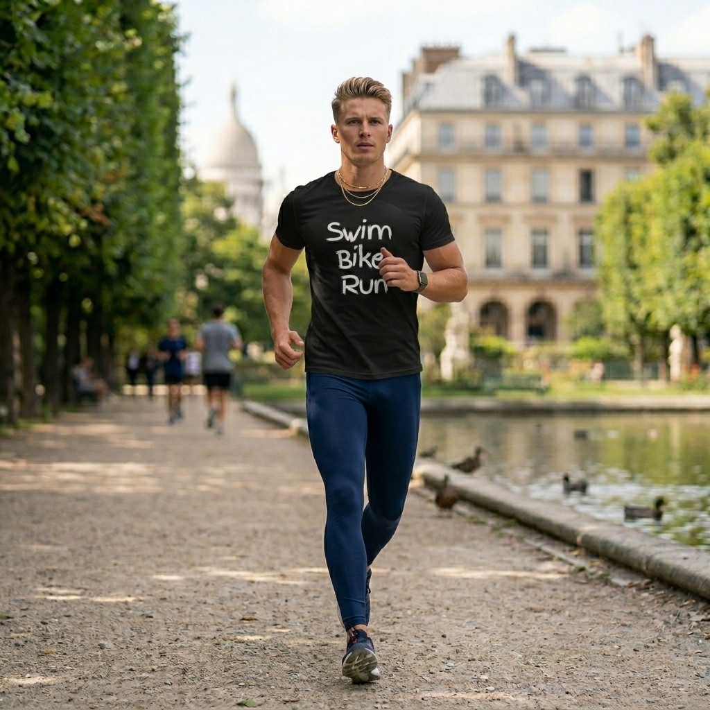 Que vous soyez en pleine préparation pour votre premier Ironman ou un triathlète chevronné, ce t-shirt "Swim Bike Run" capture l'essence même de la triple discipline. Avec son design unique effet "coup de pinceau" (brush), il s'éloigne des designs sportifs classiques pour un look plus urbain et authentique.