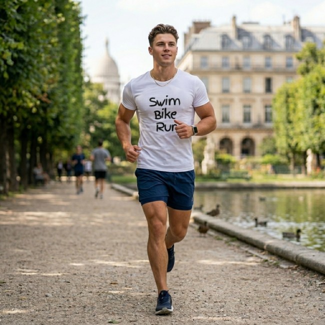 • Design Exclusif : Un lettrage dynamique et artistique qui symbolise le mouvement et l'énergie du triathlon.