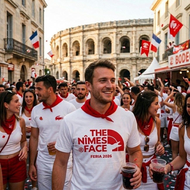 Le t-shirt officiel de votre Feria 2026 est enfin là ! Adoptez les couleurs de Nîmes avec ce design exclusif "The Nîmes Face" en rouge vibrant sur fond blanc.