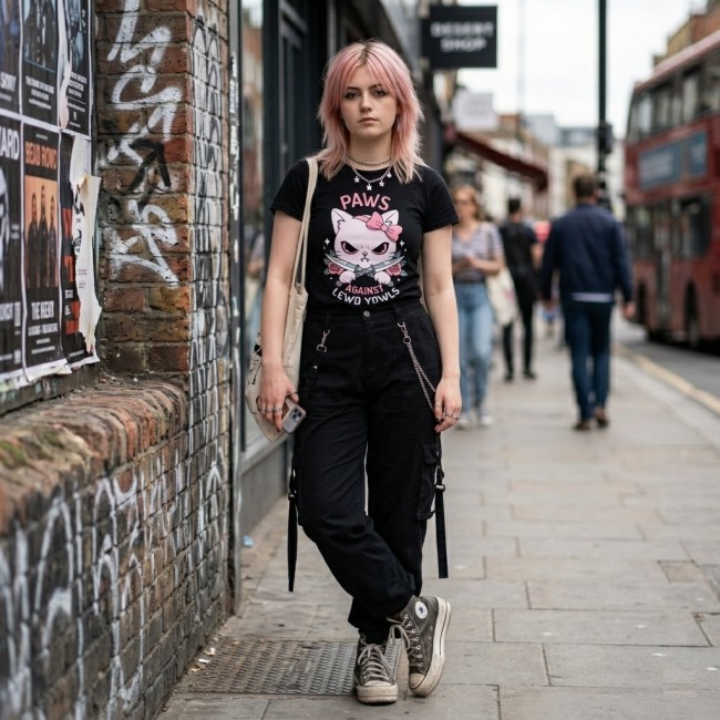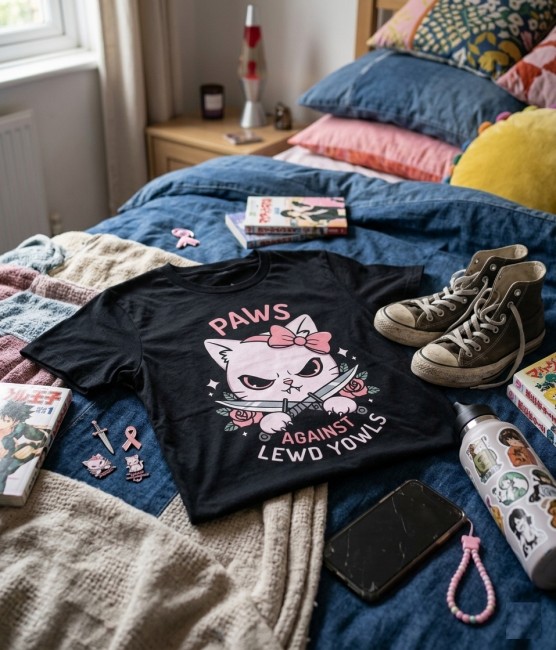 Design Unique : Une illustration originale "Paws Against Lewd Yowls" pour un look à la fois kawaii et rebelle.